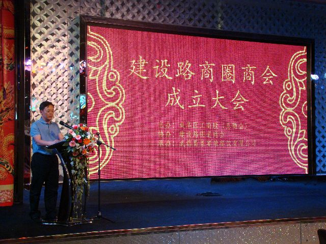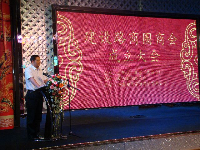 建设路街办主任屠雪锋代表街道商会向建设路商圈商会的成立及当选的会长、副会长、秘书长表示热烈的祝贺,并希望商会发挥整体优势,共同把企业做大做强,努力把建设路商圈商会树立成有影响力的品牌,为成华经济社会发展做出新的更大的贡献。