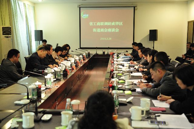 随后,召开了街道商会座谈会,会议由区委统战部副部长、工商联党组书记康萍涛主持,康萍涛就全区工商联工作的整体情况做了汇报。座谈会上,建设路街道商会就如何加强组织建设和打造特色商业街做了发言;双水碾街道商会介绍了以商招商、产业招商、抱团招商的商会重点工作;跳蹬河街道商会交流了网格化管理为抓手,细化街道商会工作的做法;龙潭街道商会谈到了加强企业宣传,为会员企业排忧解难以及街道商会面临的问题。调研活动中,区工商联常委、四川远舰建设集团公司董事长杨远见还就建立建筑行业商会,推动业内企业抱团发展,提升行业发展整体水平提出了建议。