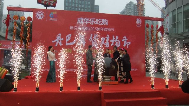 2月2日,“成华乐·吃·购—建设路商圈2015跨年购物节”—“丹巴年货购物节”在成华区建设南路SM广场开幕,成都市商务局叶晓春副处长,成华区商务局李新局长及丹巴县农牧和科技局马凌副局长、丹巴县美人谷生态农业公司舒曼总经理等领导嘉宾出席了开幕式活动。本次购物节将从2月2日一直将持续至10日,共历时九天,为市民展现来自丹巴的特色农牧产品和民族风情。活动以“圣洁甘孜,绿色丹巴”为主题,活动期间将在SM广场展销来自丹巴的牛肉干、丹巴藏香猪、高原苦荞茶、高原药材、各种高原菌类等特色产品。这次年货节,通过成华区与丹巴县共同搭建的商贸平台,一方面能让市民便捷地品尝到“舌尖上的山珍”,满足民生需求;另一方面,可以通过这个窗口,增加大家对丹巴特色农蓄产品及及藏乡文化的了解,增进汉藏人民的友谊。