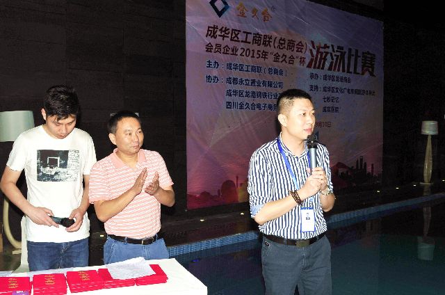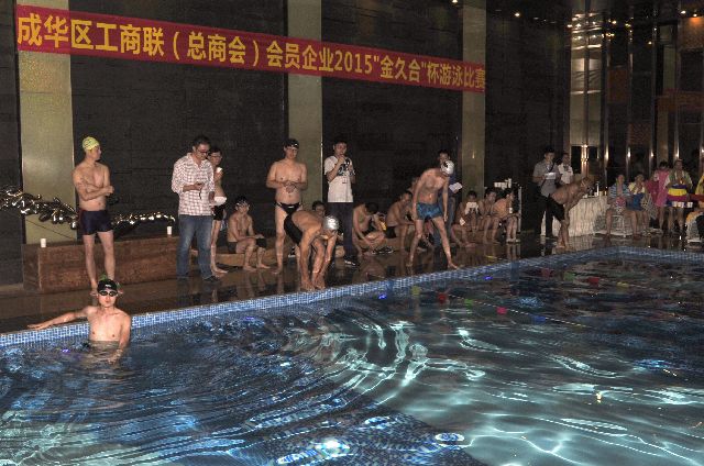 9月10日,为增强职工身体素质,发扬团队精神,增强组织凝聚力,区工商联(总商会)在通瑞永立·星城都举办了面向成华区非公有制民营企业的2015年“金久合杯”游泳比赛。民营企业参赛者、观众及相关人员共60余人到场。