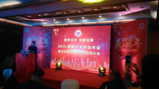 成都兴文商会副会长将长富致欢迎辞,执行会长何宇星介绍了商会2016年发展规划。何宇星表示将继续秉承“团结、互助、奉献、共赢”的核心价值观,做好兴文县在蓉的窗口,承担起政府与企业之间沟通的桥梁和纽带,推动兴文与成都两地的建设与发展。