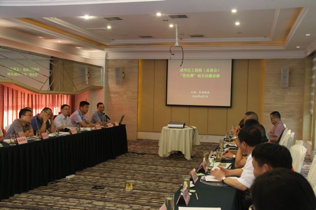 6月7日,区工商联(总商会)召开五届十六次主席(会长)会暨企业交流会。区委常委、统战部部长谯文成出席会议,区工商联(总商会)主席(会长)刘义,区委统战部副部长、区工商联党组书记颜从平,区国税局局长蒋波,区地税局局长吕良,区工商联副主席常明、张蓉,区工商联(总商会)副主席(副会长)及特邀部分会员企业代表参加会议。