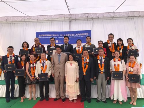 2016年11月9日——15日,福天下董事长刘煊苗先生、德泰堂副总裁刘侠女士,参加的“全球善财领袖计划印度行——印度公益人文与创新·课程”,本次活动由香港天天向上基金、印度著名慈善家萨提斯·莫迪、印度国际艺术学院和印度理工学院等机构协助,由深圳国际公益学院董事局主席马蔚华、深圳国际公益学院院长王振耀先生率领中国慈善家,赴印度德里、瓜廖尔、阿格拉等地,进行“印度公益人文与创新”全球善财领袖计划研修·辅导课程。