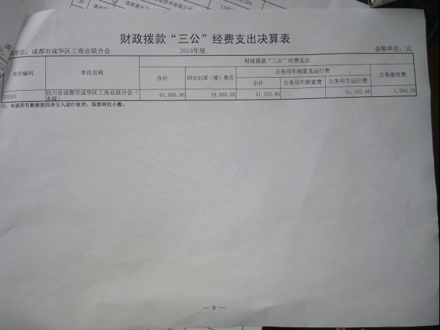 2015年因公出国(境)费1.9万元,较2014年决算数下降45.72%。主要原因是严格执行“中央八项规定”,减少出国(境)经费。