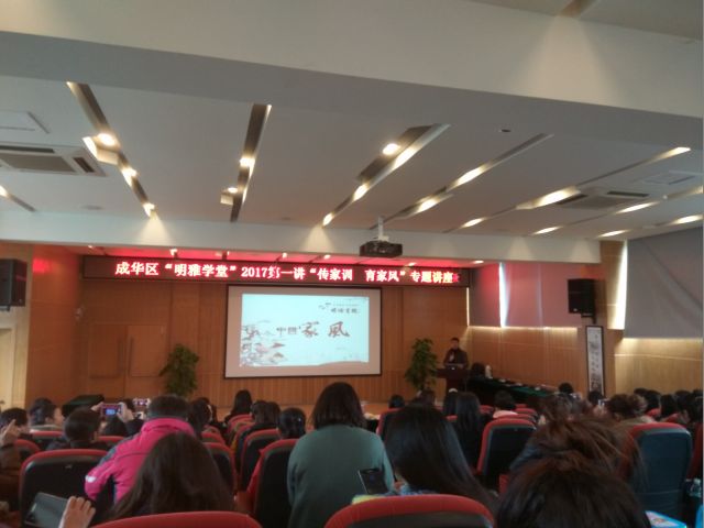 3月15日下午,区工商联组织干部职工参加了由区纪委、区文明办、区直机关工委、区妇联、区残联联合举办的成华区“明雅学堂”2017第一讲“传家训 育家风”专题讲座。