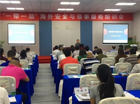7月20日,区工商联组织海景投资公司、嘉冠律师事务所等企业参加由市外事办主办的“一带一路”海外安全与领事服务培训会,外交部领事保护中心副主任陈军超一行出席会议并授课,会议由市外事侨务办副主任卢伟良主持。