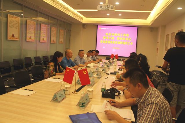 最后,黎邦华一行在党群活动中心会议室开展了座谈,黎邦华表示希望通过此次调研,深入企业进行沟通交流,了解产业及企业发展存在的问题,尤其是在成都产业发展、行业发展及新政50条出台后,以市、区工商联为平台,帮助企业不断发展壮大。梁伟就成都民营经济存在哪些困难和问题、对工商联工作的意见和建议及下半年的工作安排与大家进行了深入地交流讨论,对富森的产业布局进行了了解。富森美家居党委书记、董事总经理刘义汇报了公司经营及相关工作情况,并表示企业将不断创新发展,为成都建设全面体现新发展理念的国家中心城市积极作贡献。