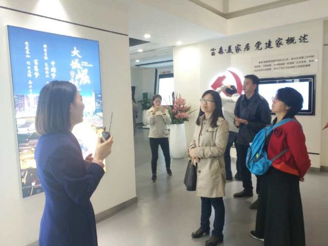 胡珍一行参观了富森美家居党群活动中心,听取了相关人员对富森美家居公司发展、富森美家居党委党建工作以及新北天地商圈统战工作的情况介绍。胡珍对富森美公司在党的建设及经济社会建设两个方面所做出的工作成绩给出了高度评价,并希望利用本次考察交流的机会,为两地的企业搭建一个学习沟通的渠道,为两地经济社会建设作出贡献。