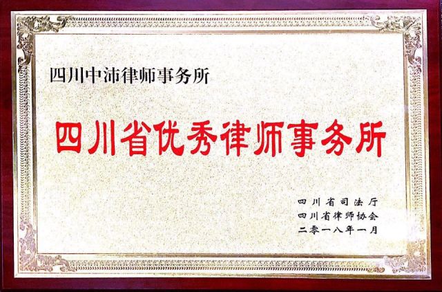 2018年1月,四川中沛律师事务所被四川省司法局、省律师协会评为“四川省优秀律师事务所”。