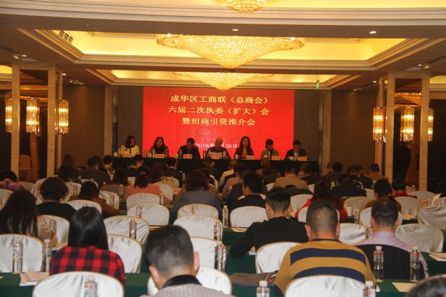 3月26日,成华区工商联(总商会)召开六届二次执委(扩大)会暨招商引资推介会,区委统战部副部长、区工商联党组书记董斌,区工商联副主席黄晓、何蕾,区工商联秘书长张恩敏及全体执委,各街道、行业、异地商会代表和特邀会员等150余人参加会议。
