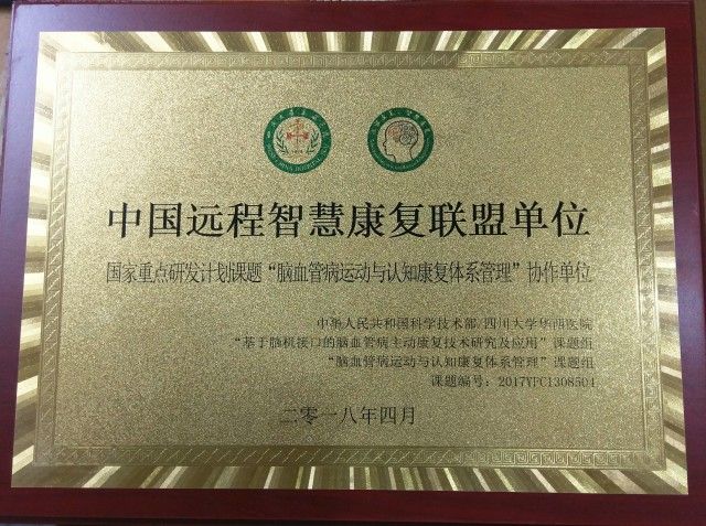 成都新华医院康复科徐嘉副主任医师代表新华医院接受授牌。徐嘉医师是成都新华医院康复医学中心学科带头人,四川大学研究生毕业,从事现代康复医学科诊疗工作20年,擅长现代康复的诊治,在当前的互联网+健康医疗大背景下,参与该课题研究对提升医院脑血管病运动与认知康复的临床和科研水平有着深远意义,有助于促进医院康复医学远程智慧康复体系的建立与发展,提高专业技术水平。