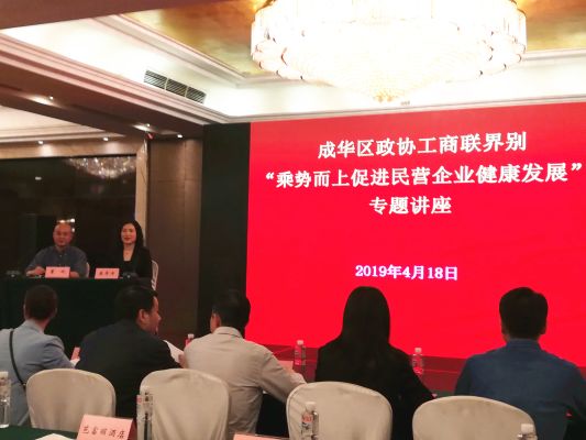 4月18日,区政协工商联界别开展了“乘势而上促进民营经济健康发展”专题讲座,区政协经济委员会、区工商联主要负责同志以及工商联界别政协委员和民营企业代表参加了会议。
