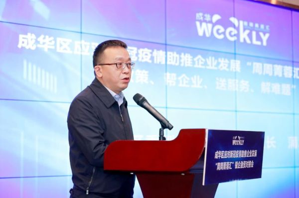 会上,成华区委副书记、区政府区长蒲发友致辞。蒲发友区长从树立信心、加大政企银合作、提升政府服务等三个层面,表达了对受疫情冲击企业的关心关爱,增强了企业对我国经济长期向好基本面的信心,并对成华区持续优化营商环境做出了郑重的承诺。
