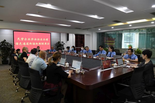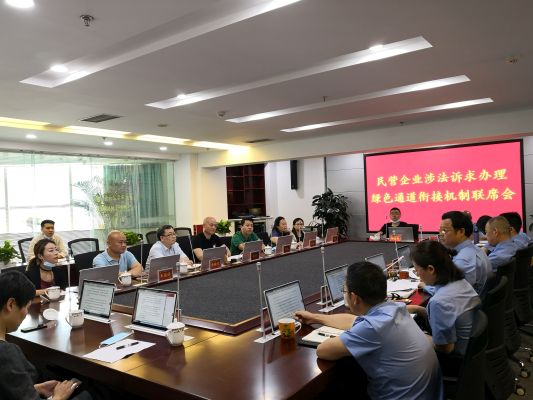 5月15日上午,区工商联、区检察院召开全区民营企业涉法诉求办理绿色通道衔接机制联席会议,共同推进依法护航民营企业防控疫情和复工复产工作。区检察院党组书记、检察长陈建勇,区委统战部副部长、区工商联党组书记董斌,区检察院党组副书记、副检察长涂友钧,区工商联党组成员、副主席黄晓出席会议。