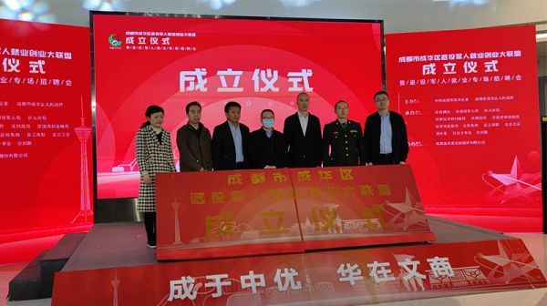 2021年3月11日上午,由中共成都市成华区委、区人民政府主办的成华区退役军人就业创业大联盟成立仪式暨退役军人专场招聘会在富森美成华商场成功举行。四川省退役军人事务厅副厅长、一级巡视员罗平恩,成都市退役军人事务局副局长方利红等出席本次活动,中共成华区委退役军人事务工作领导小组副组长、区人民政府副区长、区公安分局局长、二级巡视员赵凯雄出席活动并致辞。