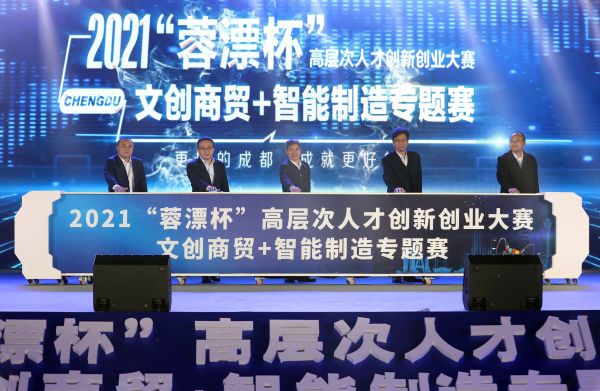 为推动政府部门、投资机构、产业园区与人才项目精准对接,3月21日,由成都市人才工作领导小组办公室主办,成都产业集团、成华区人才工作领导小组办公室联合承办的2021“蓉漂杯”高层次人才创新创业大赛“文创商贸+智能制造”专题赛在东郊记忆艺术区举行。市委常委、组织部部长、社治委主任,市人才工作领导小组组长邓涛出席并致辞,市委组织部副部长、市人才办主任彭崇实,成都产业集团党委书记、董事长石磊出席,区委书记赵春淦作成华产才推介,成都产业集团党委专职副书记刘学贵,区委副书记、区长蒲发友出席。