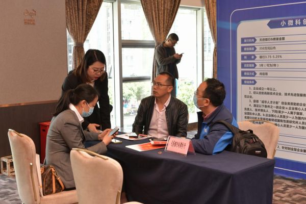 政府部门现场解读创业担保贷款贴息、中小企业政府采购合同信用融资相关政策,金融机构重点介绍“小微科创贷”“小微科创债”“信抵贷”三款为成华区科创企业量身打造的专属产品,分享了如何取得第一笔贷款、如何持续拿到贷款、如何取得基金投资等经验;线上则采用中国电信高清网络视频会议服务,未到场企业可通过在线服务向银行咨询产品、获得实时答疑服务和金融机构的融资建议。
