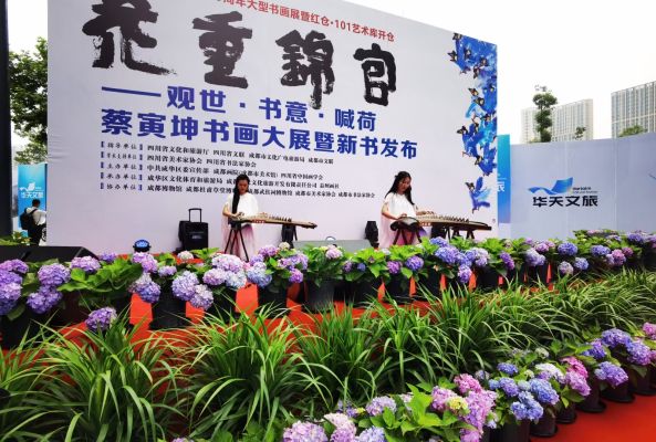 5月21日,成华区庆祝建党100周年大型书画展——《花重锦官》观世·书意·喊荷蔡寅坤书画大展暨新书发布在红仓·101艺术库举行,书画界众多艺术家齐聚活动现场。