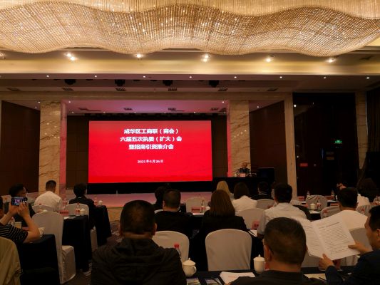 5月26日,成华区工商联(商会)召开六届五次执委(扩大)会暨招商引资推介会,成华区委常委、区委统战部部长马亚炜,成都市工商联副主席周光志出席会议。成华区委统战部常务副部长曾绍海,区工商联主席、成都富森美家居股份有限公司总经理刘义,区委统战部副部长、区工商联党组书记董斌,区工商联副主席黄晓、何蕾,区工商联秘书长温洁琳及全体执委,各行业商会、异地商会代表和特邀会员等共140余人参会。会议由董斌同志主持。
