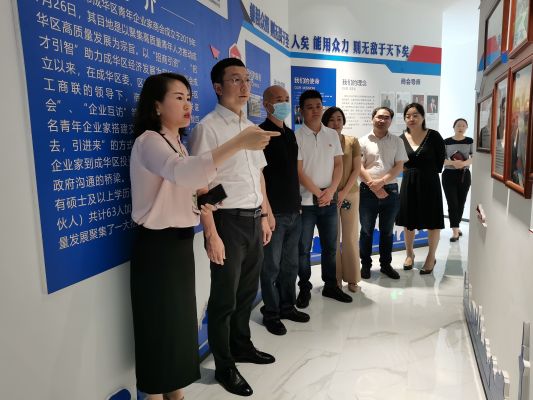 2021年6月4日,区委常委、统战部部长马亚炜率队调研成华区青年企业家商会。区委统战部副部长、区工商联党组书记董斌,区委统战部副部长、区侨台办主任李芸,区工商联副主席黄晓等人参加调研。