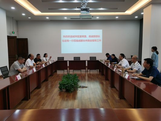 2021年6月9日,区委常委、统战部部长马亚炜率队调研成都台州商会。区委统战部副部长、区工商联党组书记董斌,区委统战部副部长、区侨台办主任李芸,区工商联副主席黄晓等人参加调研座谈会。