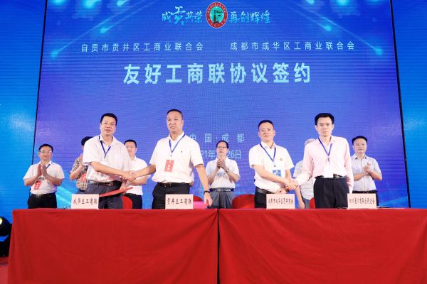 会议选举产生了成都市成华区贡井商会第一届理事会领导班子成员,成都绍枢企业管理有限责任公司董事长柏德银当选为商会第一届会长,出席大会的领导和商会全体会员共同见证了商会的启动仪式和授牌仪式。为加强成华与贡井的交流合作,两地工商联签订了《友好工商联协议》。随后,贡井区相关领导向与会人员介绍了贡井区招商引资重点项目。