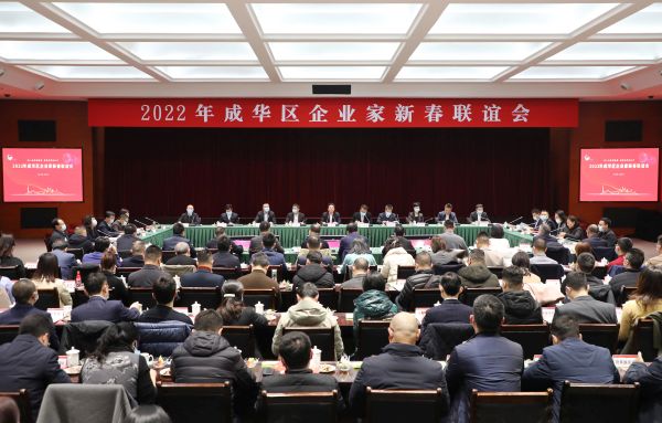 2月14日,成华区举行2022年企业家新春联谊会,与企业共叙情谊、共话发展。区委书记赵春淦出席会议并讲话。他强调,大家要更加紧密地团结在以习近平同志为核心的党中央周围,拿出“上山虎”的拼劲、保持“开山虎”的闯劲、坚持“镇山虎”的韧劲,政企同携手、一起向未来,共同开创成华高质量发展新局面,奋力谱写社会主义现代化新成华建设新篇章,以优异成绩迎接党的二十大和省第十二次党代会、市第十四次党代会胜利召开。