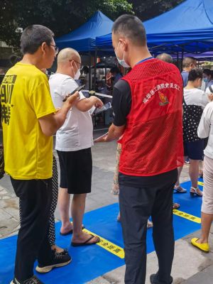 自7月15日成都市新增1例本土疫情以来,根据疫情防控工作需要,成华区分别于7月15日19:00至24:00、7月17日7:00至12:00在辖区范围内开展第一轮、第二轮全员核酸检测。区工商联积极响应成华区疫情防控指挥部号召,组织党员义工第一时间下沉到双水碾街道站北社区站北东街3号、站北东街188号云景豪庭及站北东街125号街面3个核酸检测点位,共协助完成近15000人次的核酸检测工作。