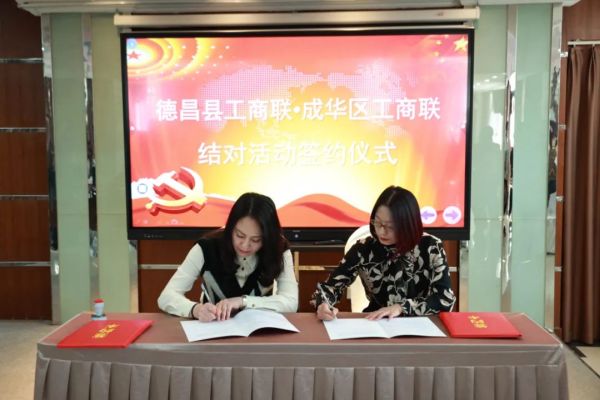 实地考察结束后,成华区工商联、德昌县工商联及企业家在泽南贸易有限公司会议室举行了交流座谈会。双方分别介绍了区域经济发展和产业特色情况。为了更好地发挥两地工商联的组织优势,加强双方的交流合作,成华区工商联与德昌县工商联签订了《友好工商联(商会)合作协议书》,双方将本着“优势互补、互利互惠、长期合作、共同发展”的原则,进一步发挥工商联桥梁纽带作用,建立两地工商联(商会)合作机制,共同搭建两地商会和企业沟通交流合作平台,促进双方企业做大做强,促进两地工商联服务“两个健康”能力的共同提升。