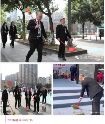 春日的阳光和煦温暖,志愿者们一路欢声笑语来到昭青路社区广场。到达目的地后,他们立刻分工,拿起清洁工具开始打扫广场卫生。