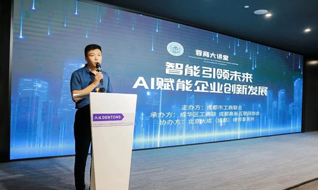 为进一步深化民营企业对人工智能的认识与了解,助力企业创新发展和转型升级,由成都市工商联主办,成华区工商联、成都高新互联网协会联合承办、北京大成(成都)律师事务所协办的蓉商大讲堂——《智能引领未来—AI赋能企业创新发展》于2024年7月4日成功举行,成都市工商联副主席盛成皿、成华区工商联主席陶新征及全市相关商协会负责人、企业主约150余人参会。