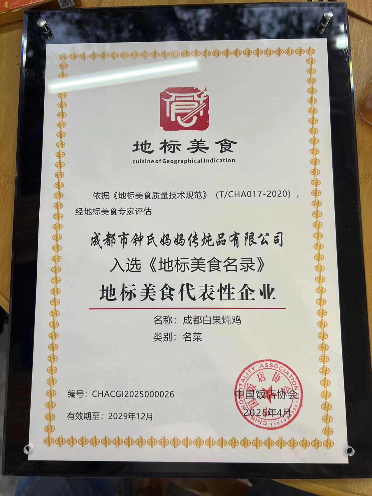 热烈祝贺成都市钟氏妈妈传炖品有限公司入选地标美食代表性企业
