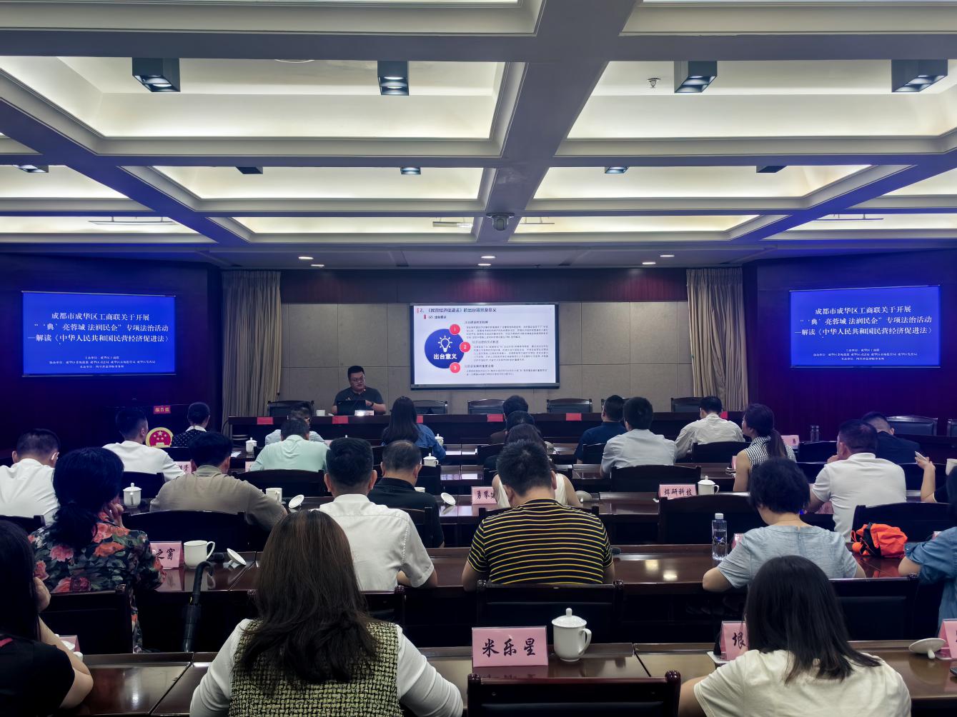 区委统战部副部长、区工商联党组书记黄章钧讲话指出:这部法律标志着国家对民营经济支持政策的法治化、制度化,进一步保障了民营经济的平等地位和市场准入,破除了隐性壁垒,完善了产权保护和企业家权益保障体系,为民营企业创造了更加稳定、公平、透明的发展环境。区工商联将以此次法律实施为契机,持续开展系列普法宣传活动,深化政策服务,通过政策宣讲、法律咨询和案例解读等形式,帮助民营企业准确理解法律精髓,有效运用法律武器维护自身合法权益。同时,工商联将加强与司法机关和政府职能部门的合作,推动《中华人民共和国民营经济促进法》在成华区的有效实施,以法治力量激发民营经济的创新活力。