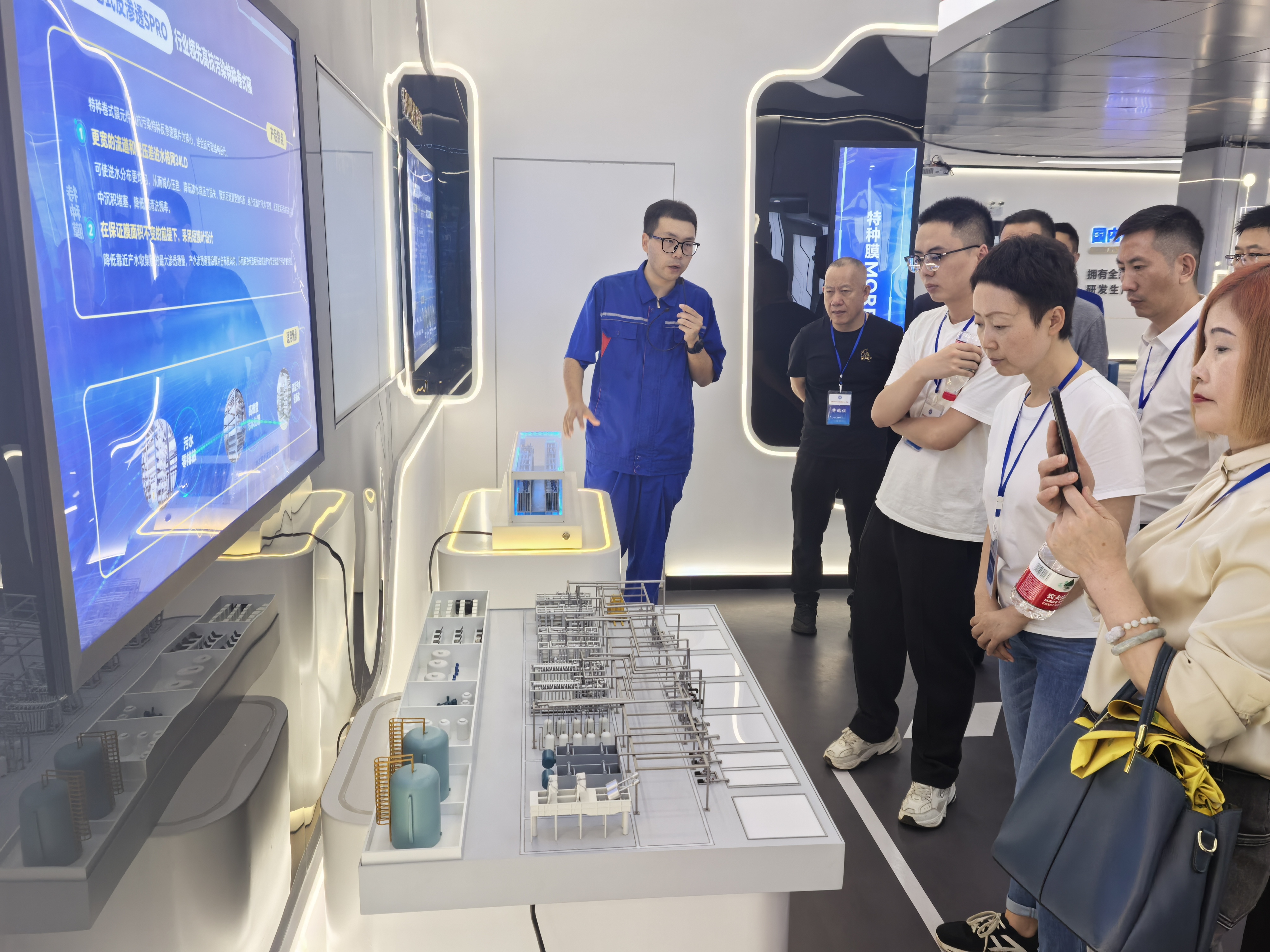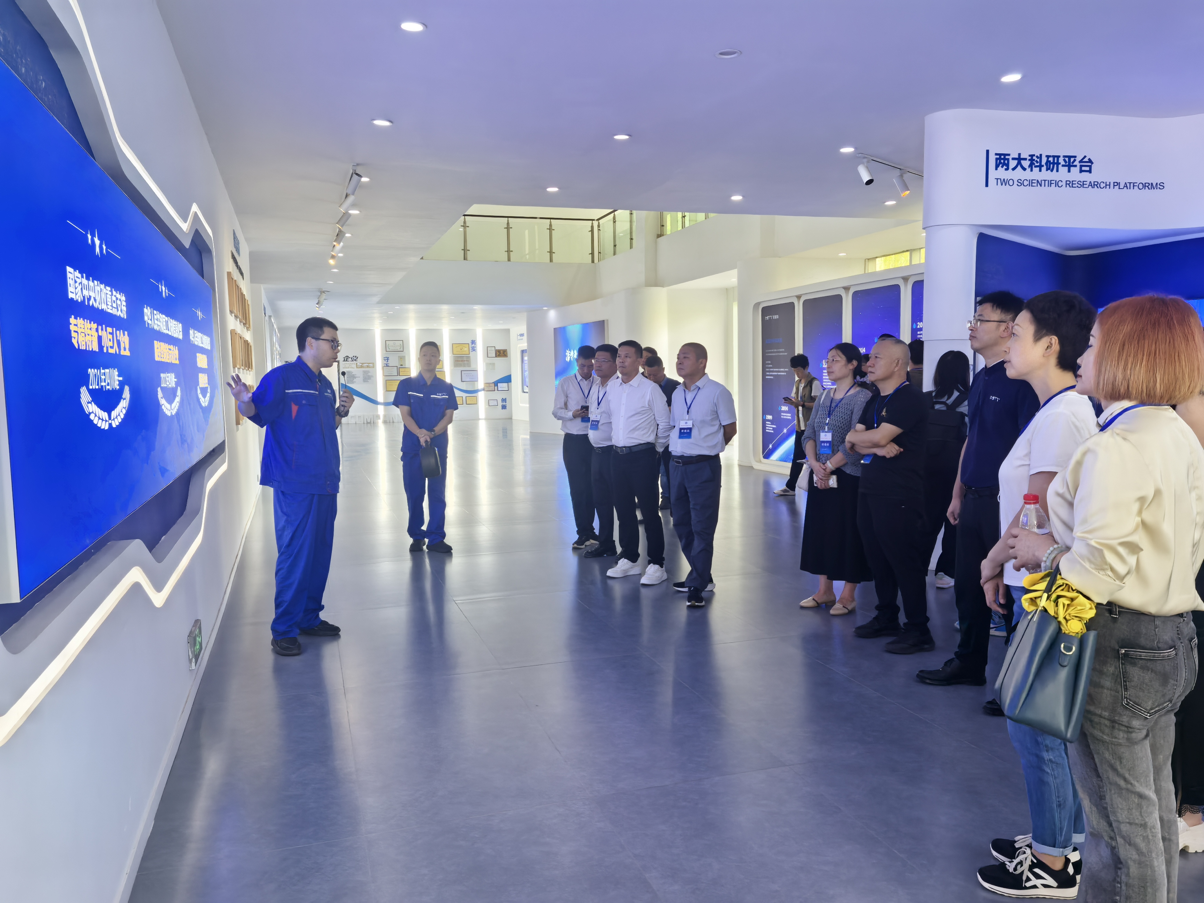 随后,一行人走访座谈了成都美富特环保产业股份有限公司,作为四川环保产业的领军企业,也是中央财政重点支持专精特新“小巨人”企业,直观参观了美富特公司自主研发的一个集成了AI技术的“美云智慧管理平台”污水处理厂运营管理系统,用于水魔方装配式污水处理场产品中。企业家们对探讨交流民营企业数智化、绿色化转型升级经验,及组织夸行业领域的企业常态化开展项目对接、资源共享、经验交流,促进产业链上下游协同展开了深入探讨。
