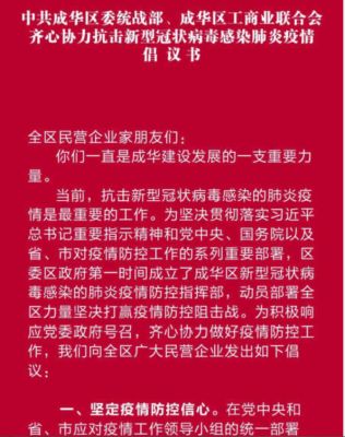 自四川省启动重大突发公共卫生事件一级响应以来,为严密防范新型冠状病毒感染的肺炎疫情,成华区工商联充分调动机关力量,分类分层抓好疫情防控工作,全力打好疫情阻击战。
